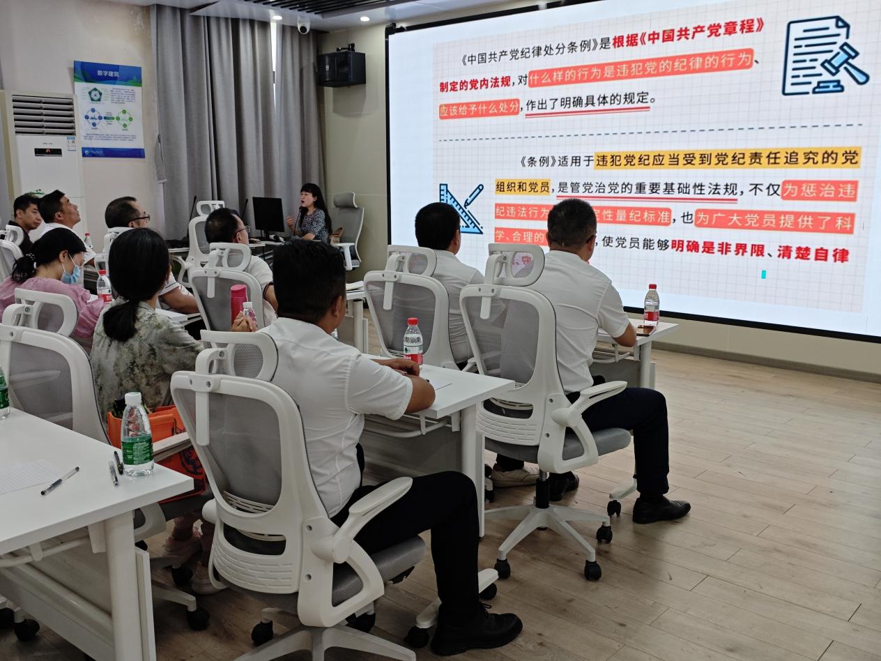 党课上,贺文洁博士围绕《中国共产党纪律处分条例》主要内容,通过剖析典型案例,让大家深刻认识到违法违纪的严重性和危害性,进一步增强了大家严守纪律规矩的自觉性和坚定性。